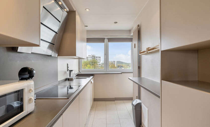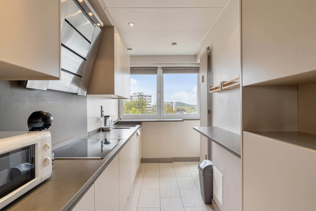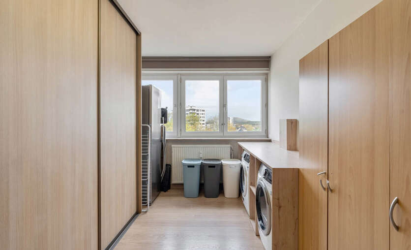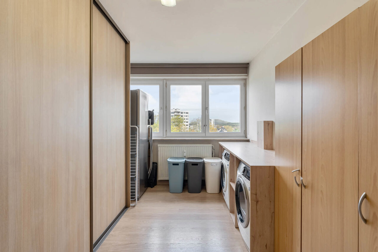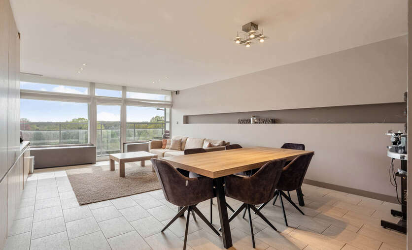 Gelegen op de 7de verdieping heeft het appartement een prachtig uitzicht. Alle voorzieningen bevinden zich op wandelafstand (centrum Genk) doch is het er rustig wonen. Het appartement is volledig gerenoveerd en voorzien van alle comfort. De grote raampartijen in de leefruimte zorgen voor veel natuurlijk licht en een adembenemend uitzicht. De ingebouwde wandkast geeft een mooie toets aan de ruimte en toegang tot een aparte berging. De keuken is volledig geïnstalleerd en voorzien van een handig (overdekt) terras. In 2025 werd de badkamer gerenoveerd en voorzien van inloopdouche. Verder is er een apart toilet en 2 ruime kamers waarvan er momenteel 1 dienst doet als dressing/wasplaats. In de kelderverdieping is er een berging voorzien. Eveneens inbegrepen in de prijs is de garagebox.