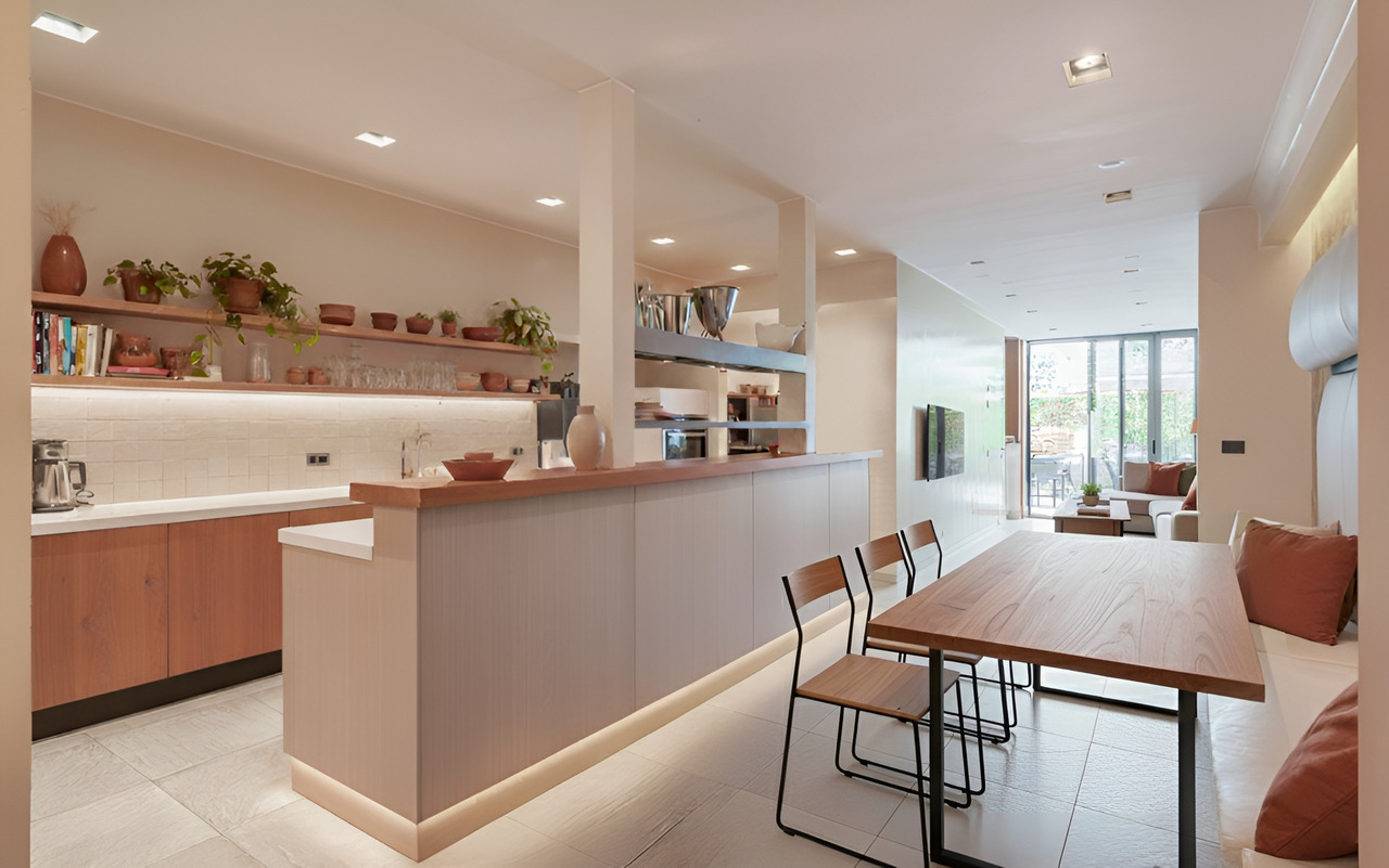 De gelijkvloerse verdieping heeft dienst gedaan als restaurant. De getoonde foto's zijn voorbeelden hoe, op een eenvoudige manier en zonder grote kosten, de gelijkvloerse verdieping kan omgetoverd worden in een aangename, warme thuis...