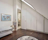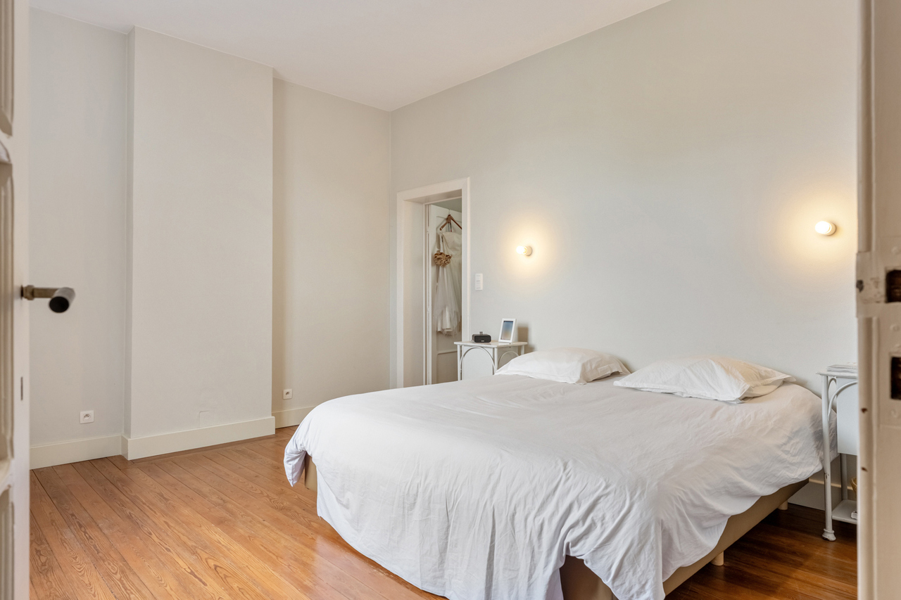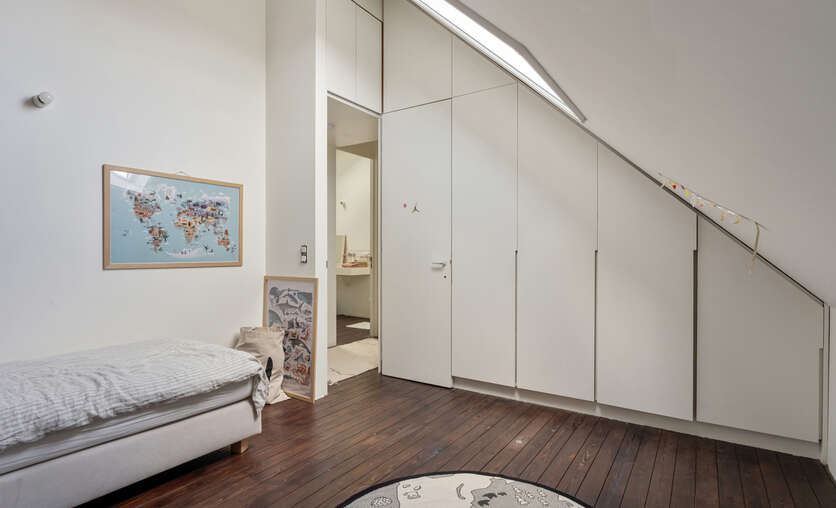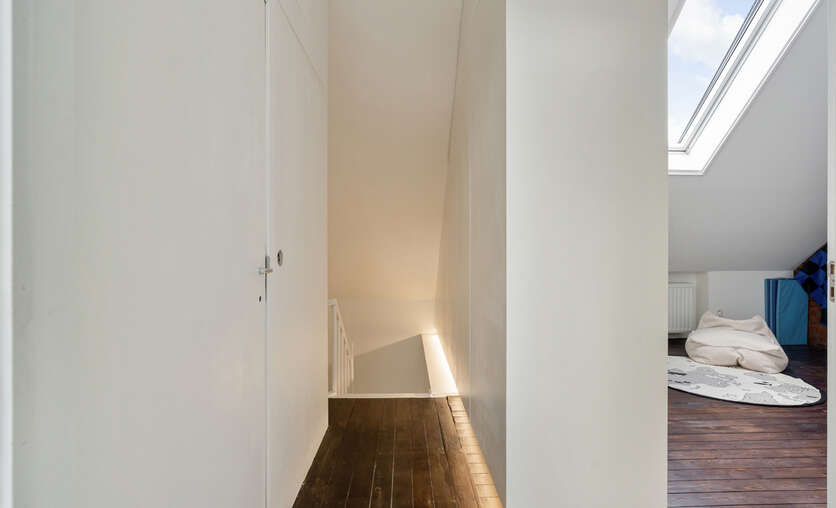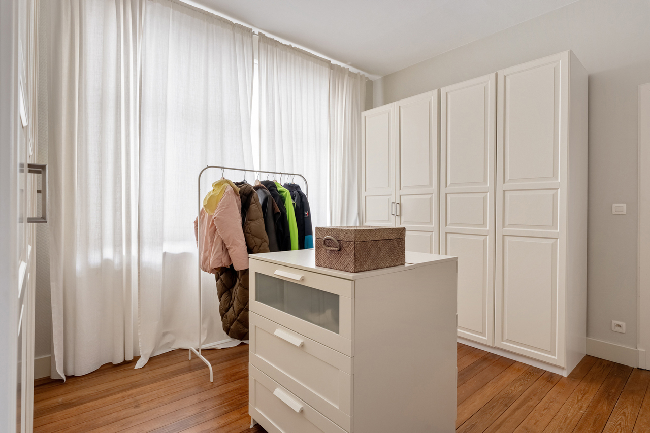 Op de eerste verdieping zijn er 2 zeer ruime slaapkamers (waarvan er momenteel 1 dienst doet als dressing), een bureau/kinderkamer en een badkamer voorzien van inloopdouche, lavabomeubel en toilet. Op zolderverdieping werd volledig gerenoveerd/omgebouwd tot 2 mooie slaapkamers en een badkamer met ligbad, lavabomeubel en toilet. Verder zijn er grote inbouwkasten voorzien zodat er voldoende opbergruimte is. De veluxramen beschikken over screens aan de buitenzijde.