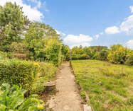 Via de overdekte koer kom je aan 2 werkplaatsen die verbonden zijn d.m.v. een zolder. De tuin geeft uit op de fruitboomgaarden.