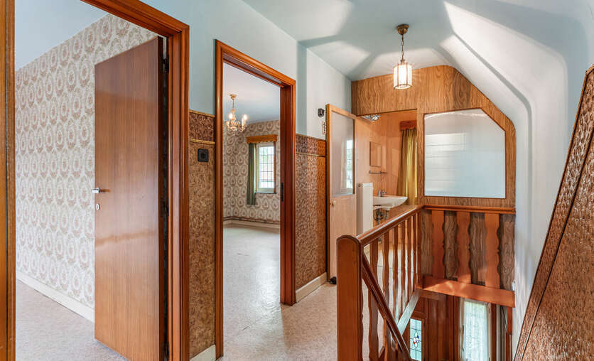 De woning vraagt een renovatie om te voldoen aan de huidige (energetische) normen. De gelijkvloerse verdieping bestaat uit een eet- en zitplaats (deze kunnen afgescheiden worden d.m.v. een dubbele deur) en een keuken. Op de eerste verdieping zijn er 3 slaapkamers en een badkamer. De zolderverdieping is bereikbaar via een uitschuifbare trapladder. Verder is de woning deels onderkelderd.